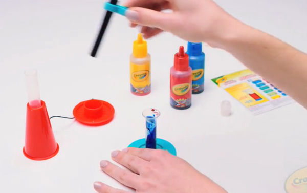 Ви змішуєте кольори на основі діаграми, яка надає багато можливостей для обговорення співвідношення основних кольорів. Кожен відтінок потребує приблизно 15 крапель. Щипчики використовуються для того, щоб запобігти кольору від фарбування пальців. Потрібно видавити кілька крапель у маленький бульбашок, флакон йде на базу, вона тримає флакон у вертикальному положенні під час стискання пляшки. Вбиральний середній шар маркера вбирає колір, цей процес дуже цікаво спостерігати. Самі штампики дуже маленькі. Маркер потрібно тримати прямо, натискаючи зверху вниз, щоб отримати гарний штамп. Цікавий набір, у якому сам процес створення штампа навіть цікавіший, ніж підсумковий результат.